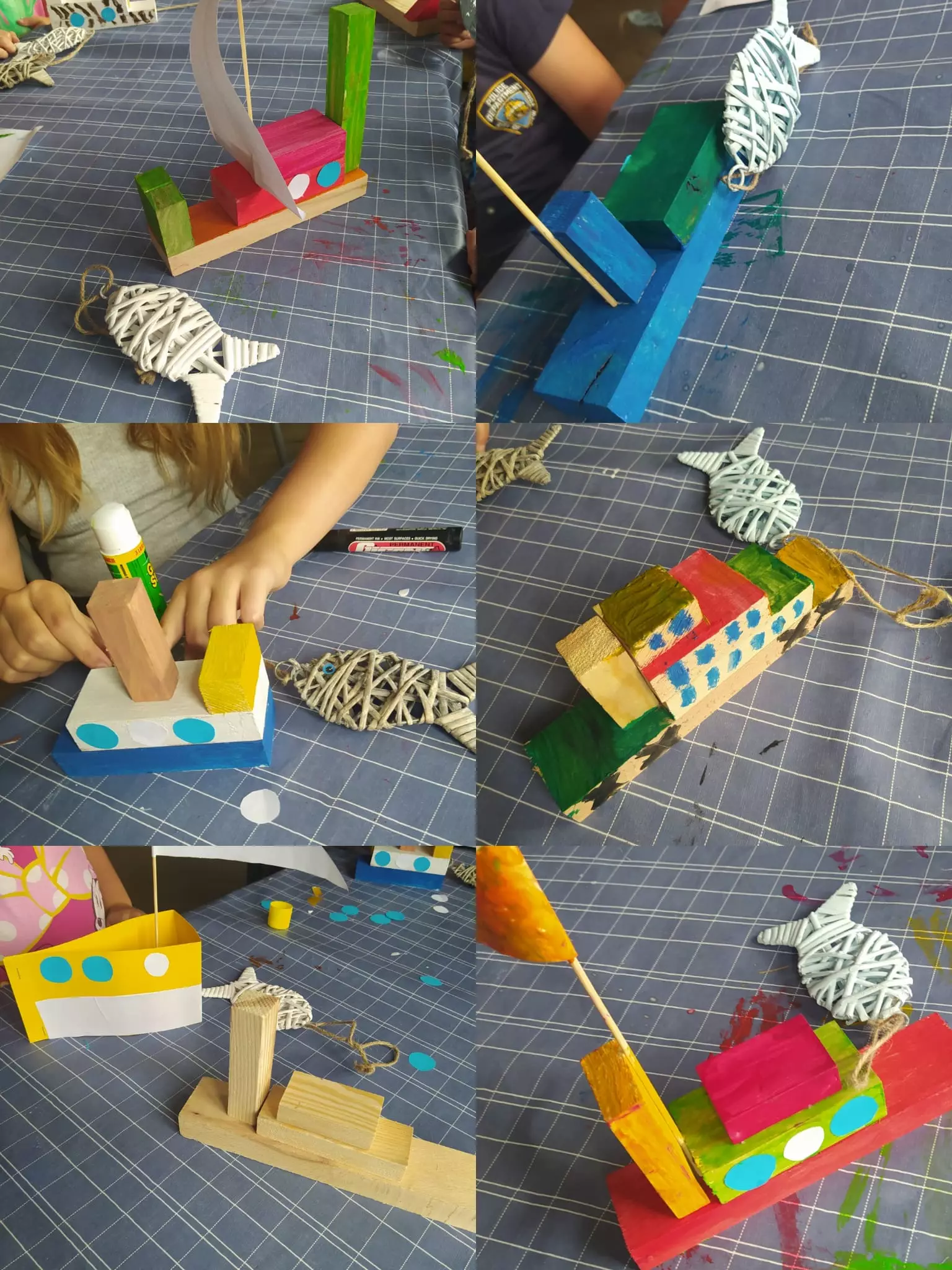 Z drewnianych klocków zrobili  "eco" statki i kutry, łowiąc "złotą rybkę".
