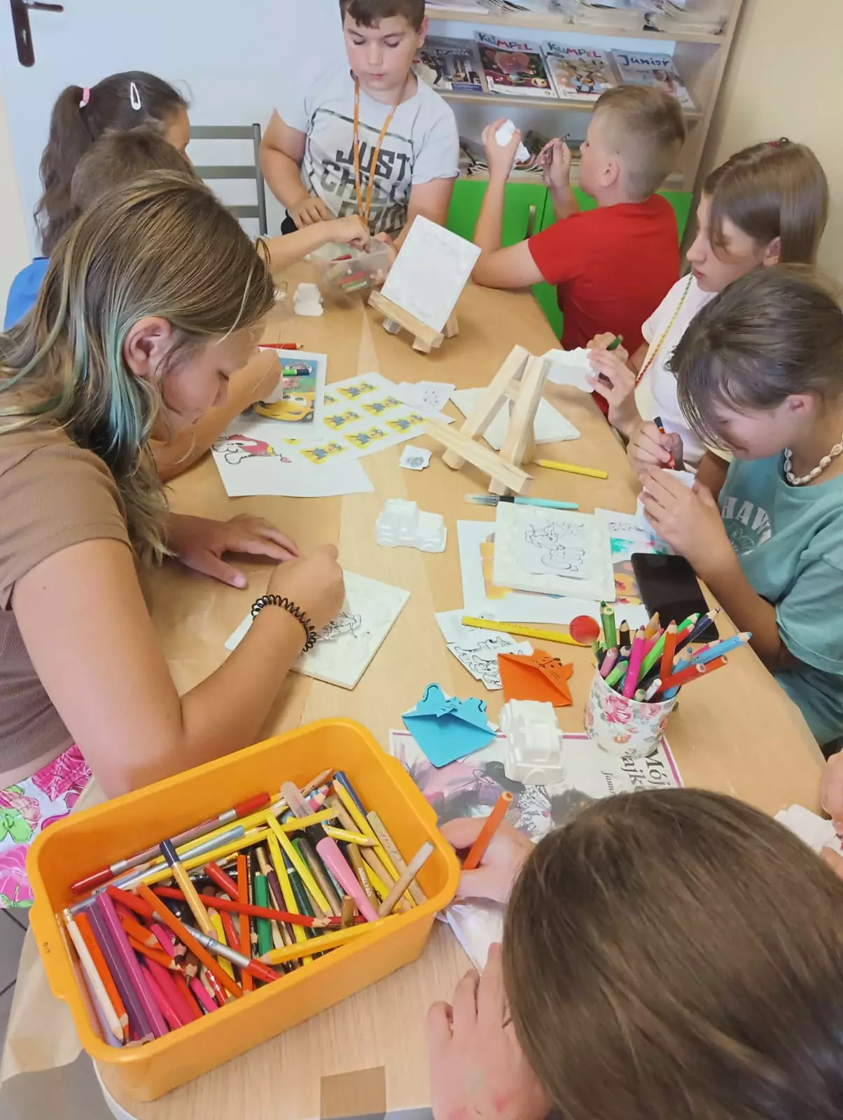 W poniedziałkowe popołudnie w bibliotece w Kośmidrach odbyły się kolejne zajęcia literacko plastyczne.