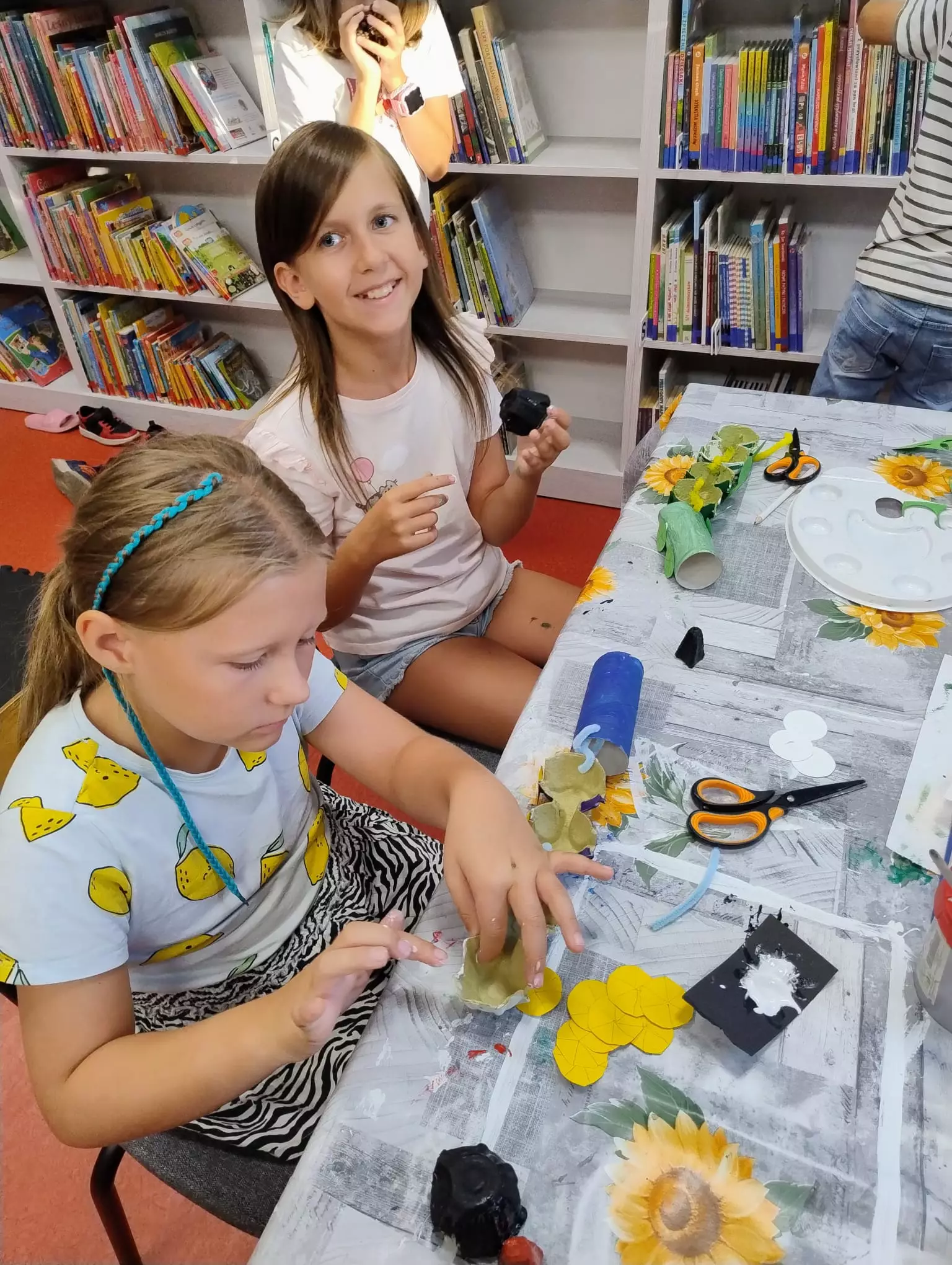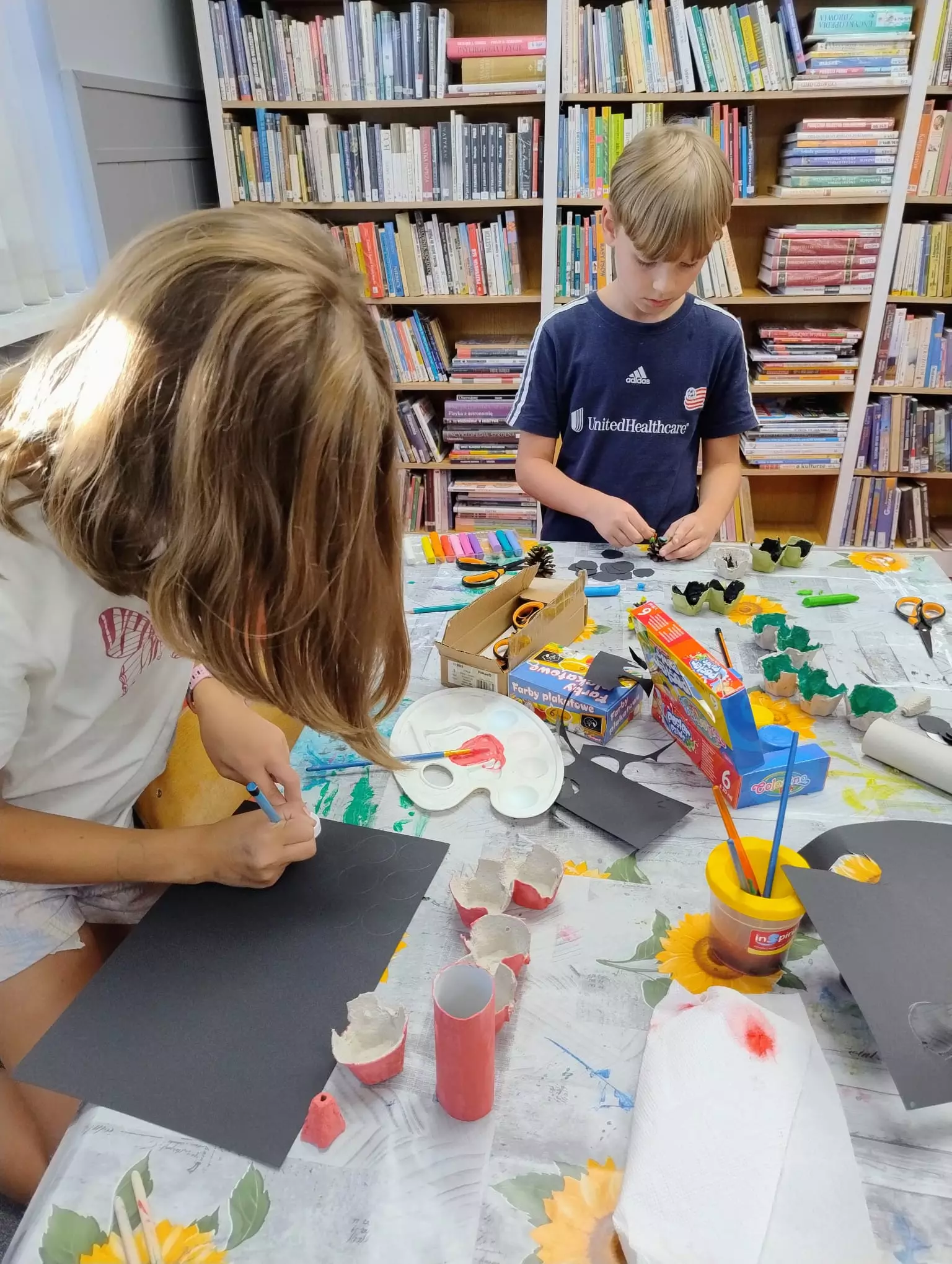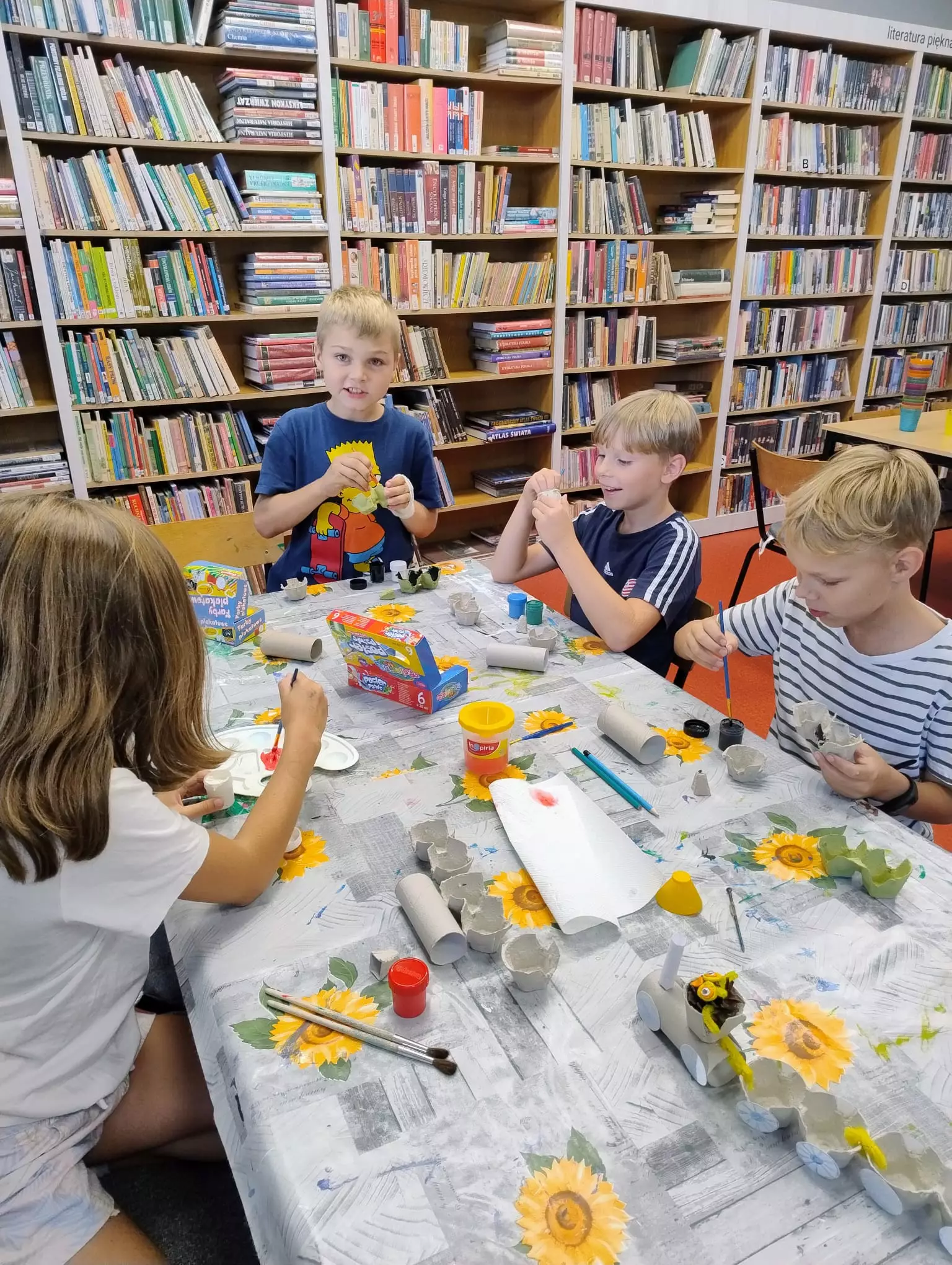 Podczas zajęć wysłuchaliśmy opowiadania Clemence Masteau i Caroline Modeste pt. „Wizyta w bibliotece" oraz rozmawialiśmy o ogólnopolskiej akcji Narodowe Czytanie ????????. Dzieci dowiedziały się, kto był inicjatorem tej akcji, oraz co ma na celu. W ramach pracy plastycznej dzieci wykonały pociągi z sowimi konduktorami .