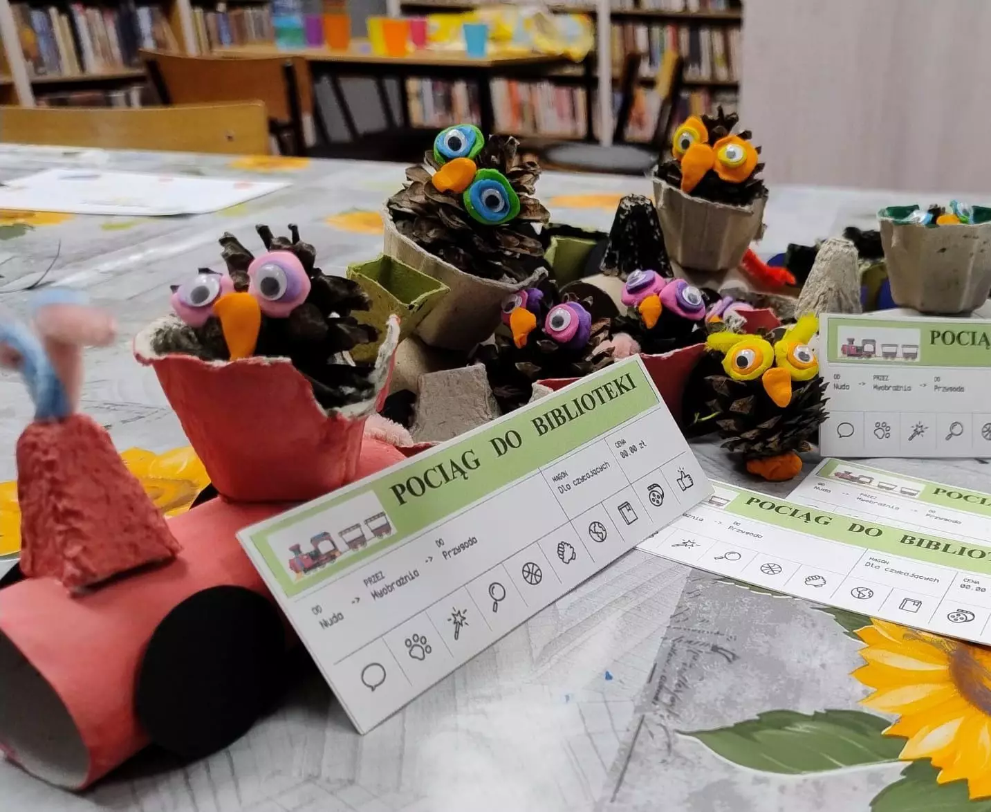 Dzieci otrzymały bilety, które będą kasować po każdym wypożyczeniu książki z wybranej kategorii. Na każdego, kto ukończy całą trasę pociągu, czeka niespodzianka !