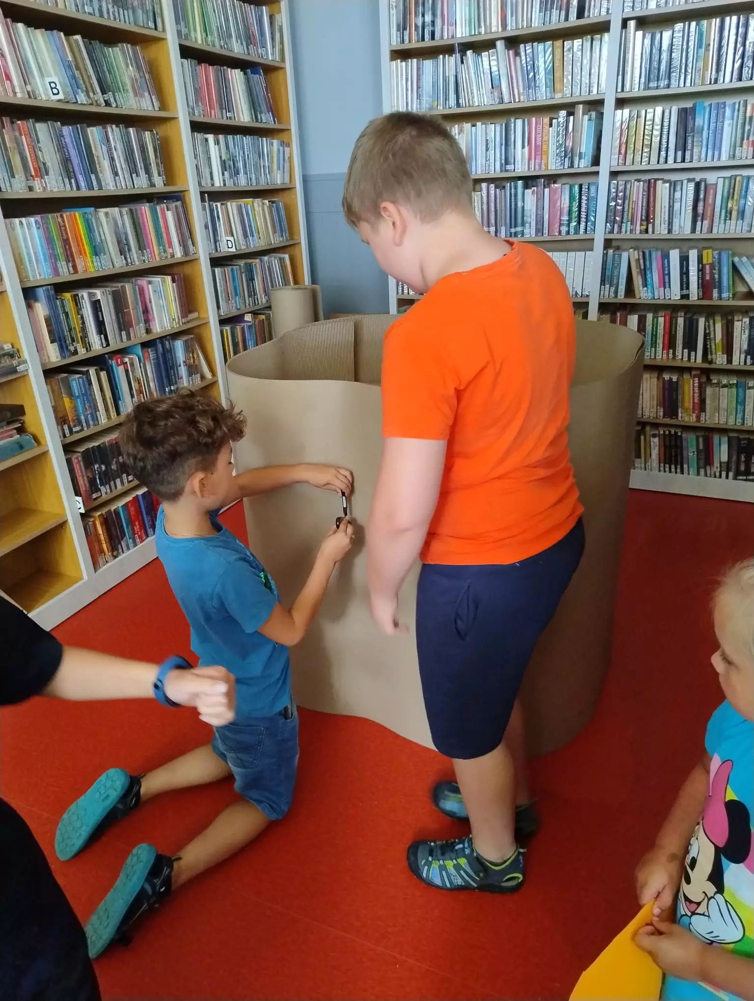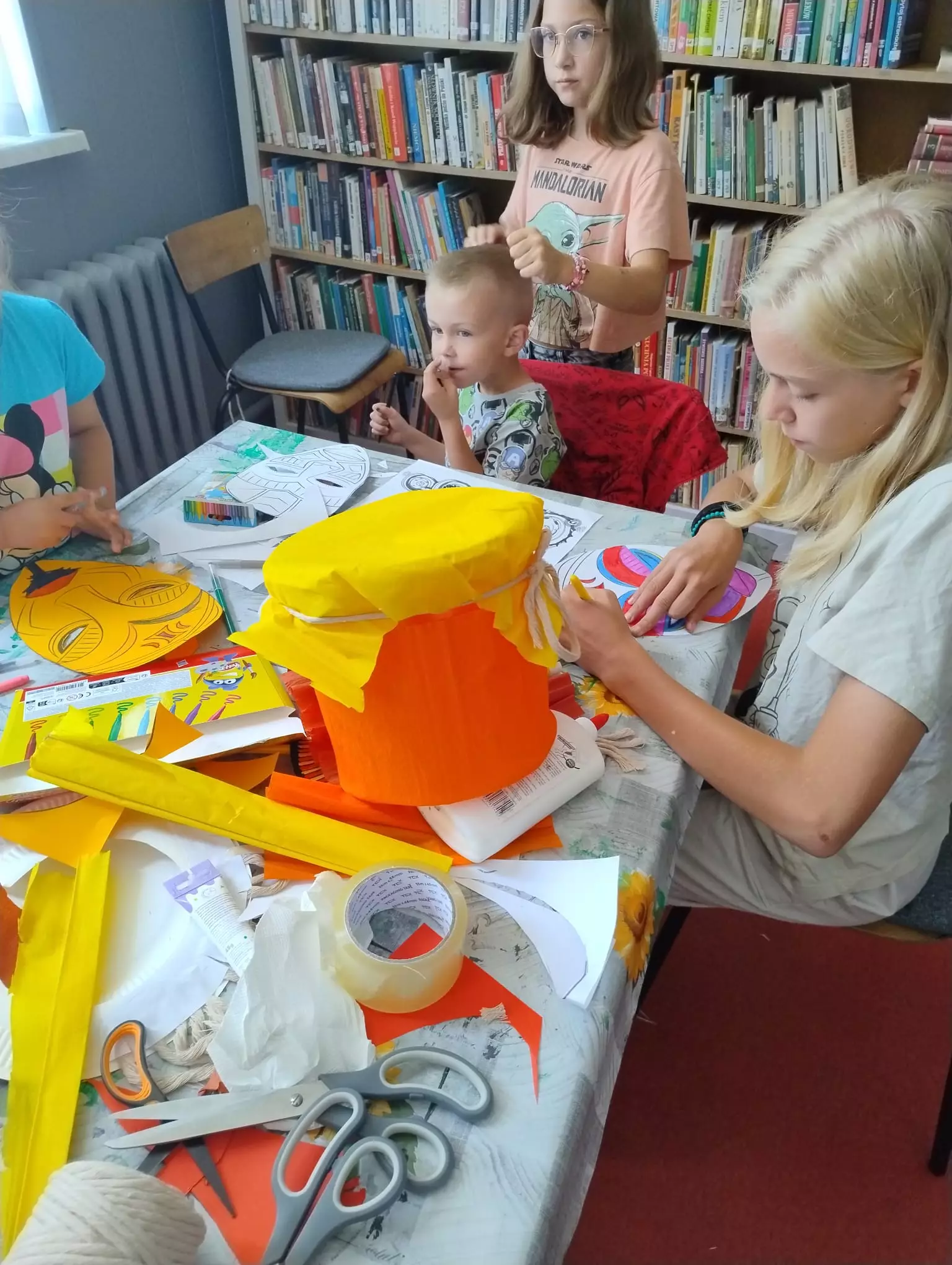 8 sierpnia na kolejnych wakacyjnych zajęciach literacko-plastycznych w Filii w Łagiewnikach Małych z Ameryki wyruszyliśmy poznawać zakątki Afryki. Razem z Kazimierzem Nowakiem, bohaterem książki Łukasza Wierzbickiego "Afryka Kazika", poznaliśmy afrykańskie zwierzęta i odwiedziliśmy wioskę Szylluków, gdzie stworzyliśmy naszyjniki, maski, bębny???? oraz zbudowaliśmy afrykański domek????. To była naprawdę dzika przygoda.