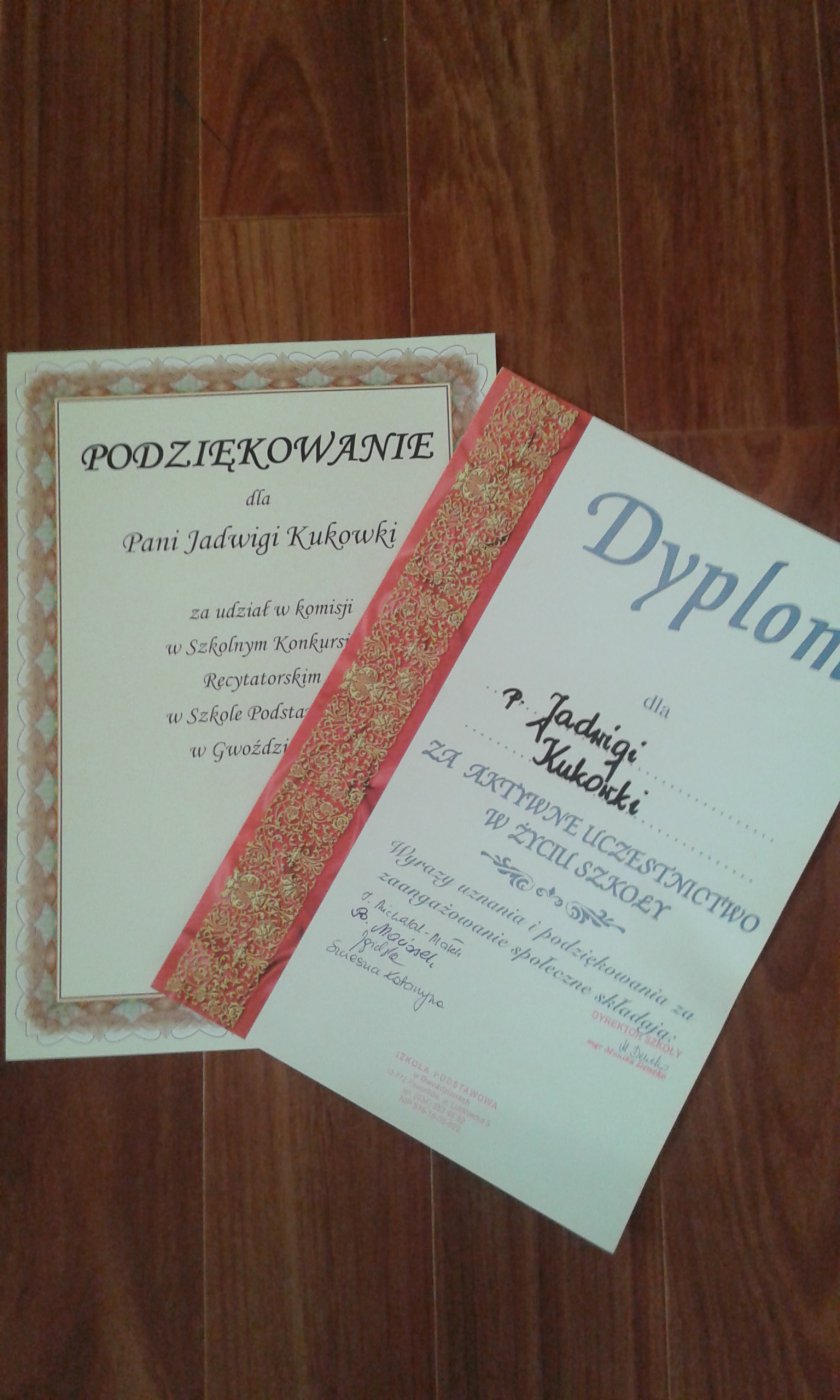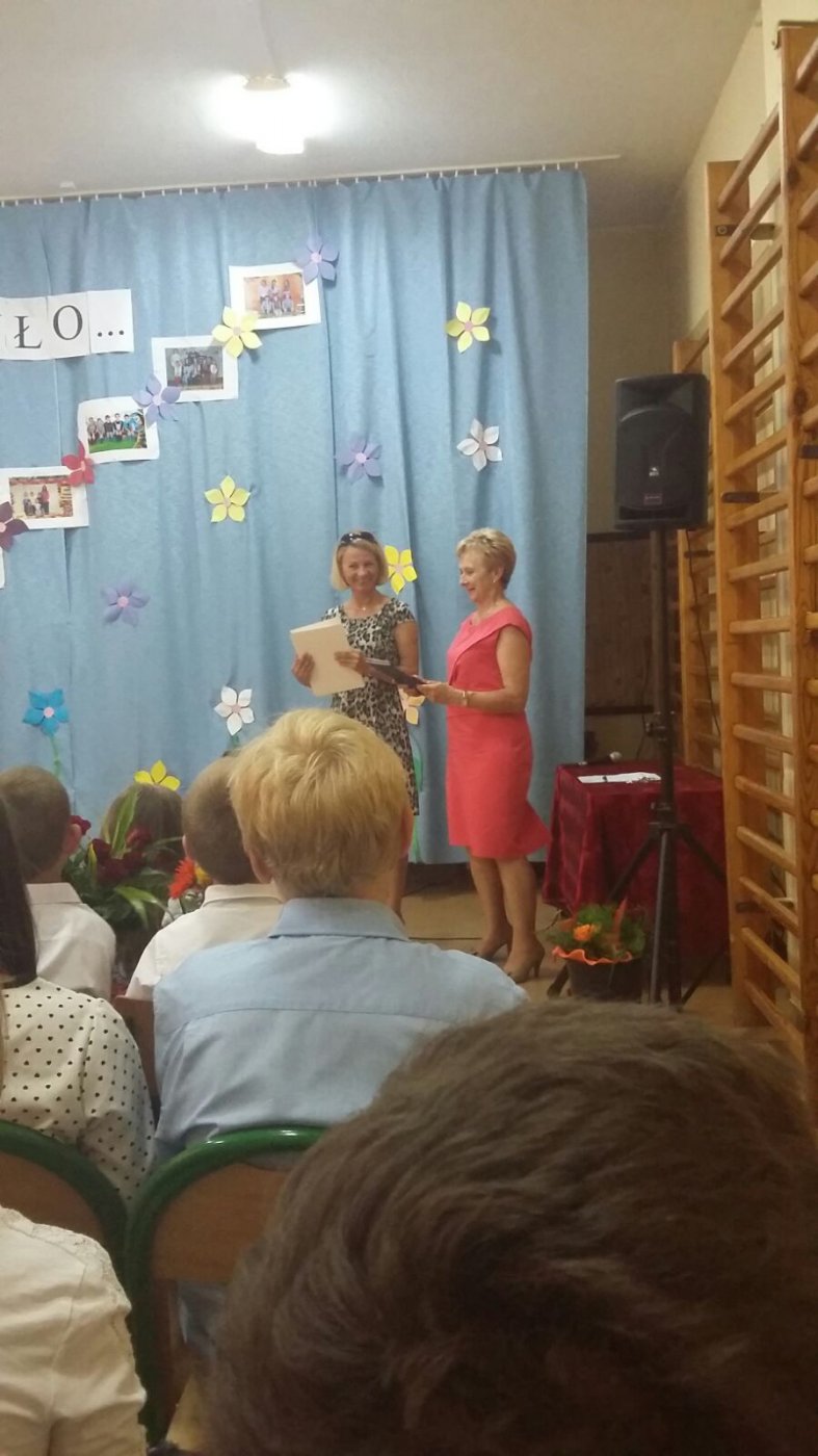 Podczas uroczystości Szkoła Podstawowa wręczyła podziękowania bibliotekarce P.Jadwidze oraz podziękowała jej za współpracę.