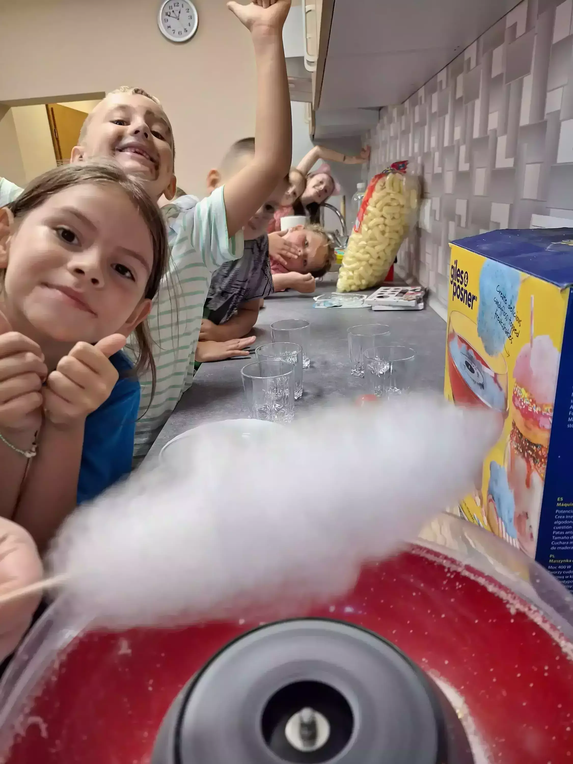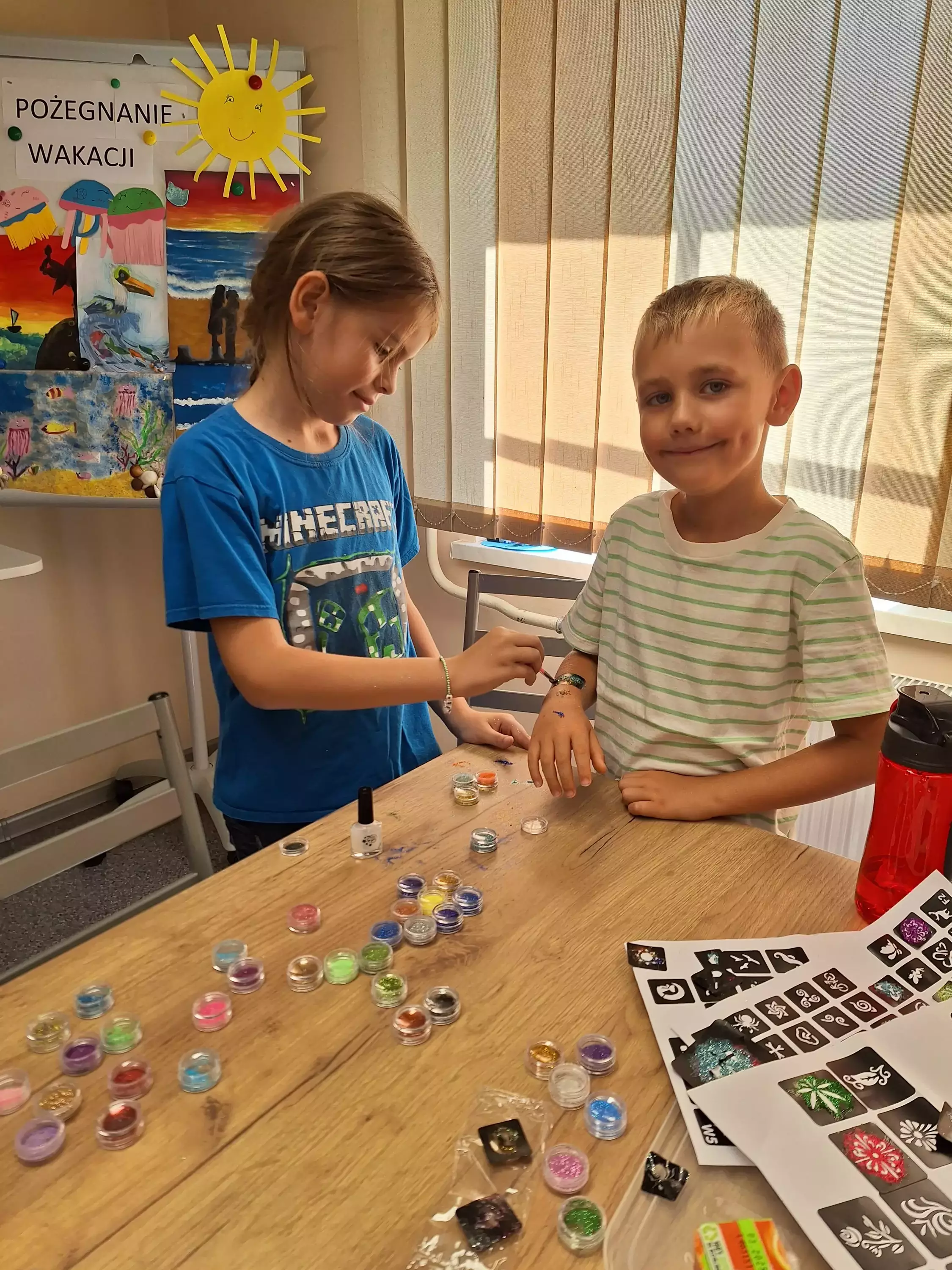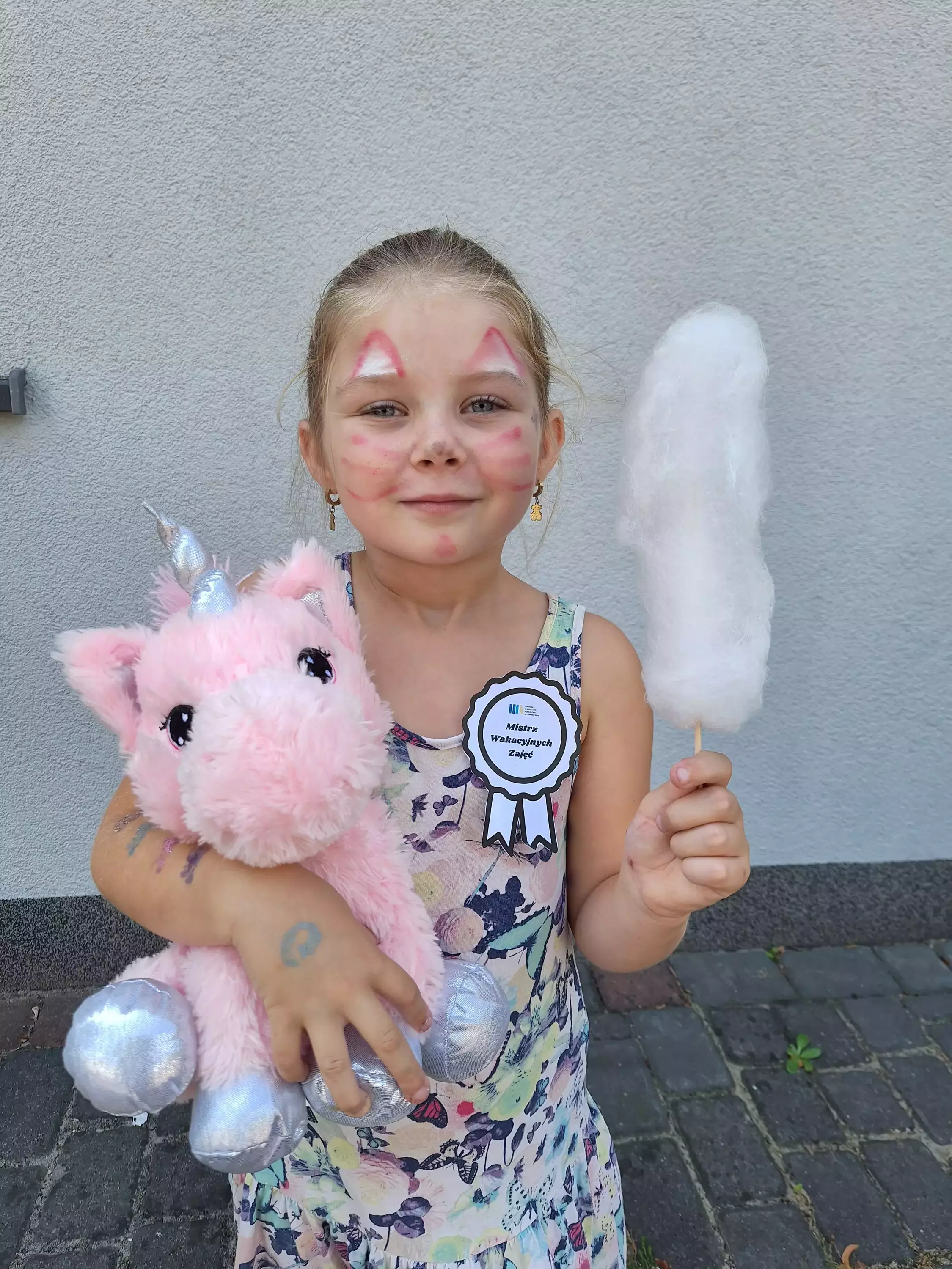 Dzieci malowały buźki, tworzyły brokatowe tatuaże i bawiły się chustą animacyjną, czytając "bajki biegane". Na dworze puszczaliśmy bańki mydlane, a na koniec czekała na nas słodka niespodzianka – wata cukrowa! Każdy uczestnik dostał medal Mistrza Wakacyjnych Zajęć.