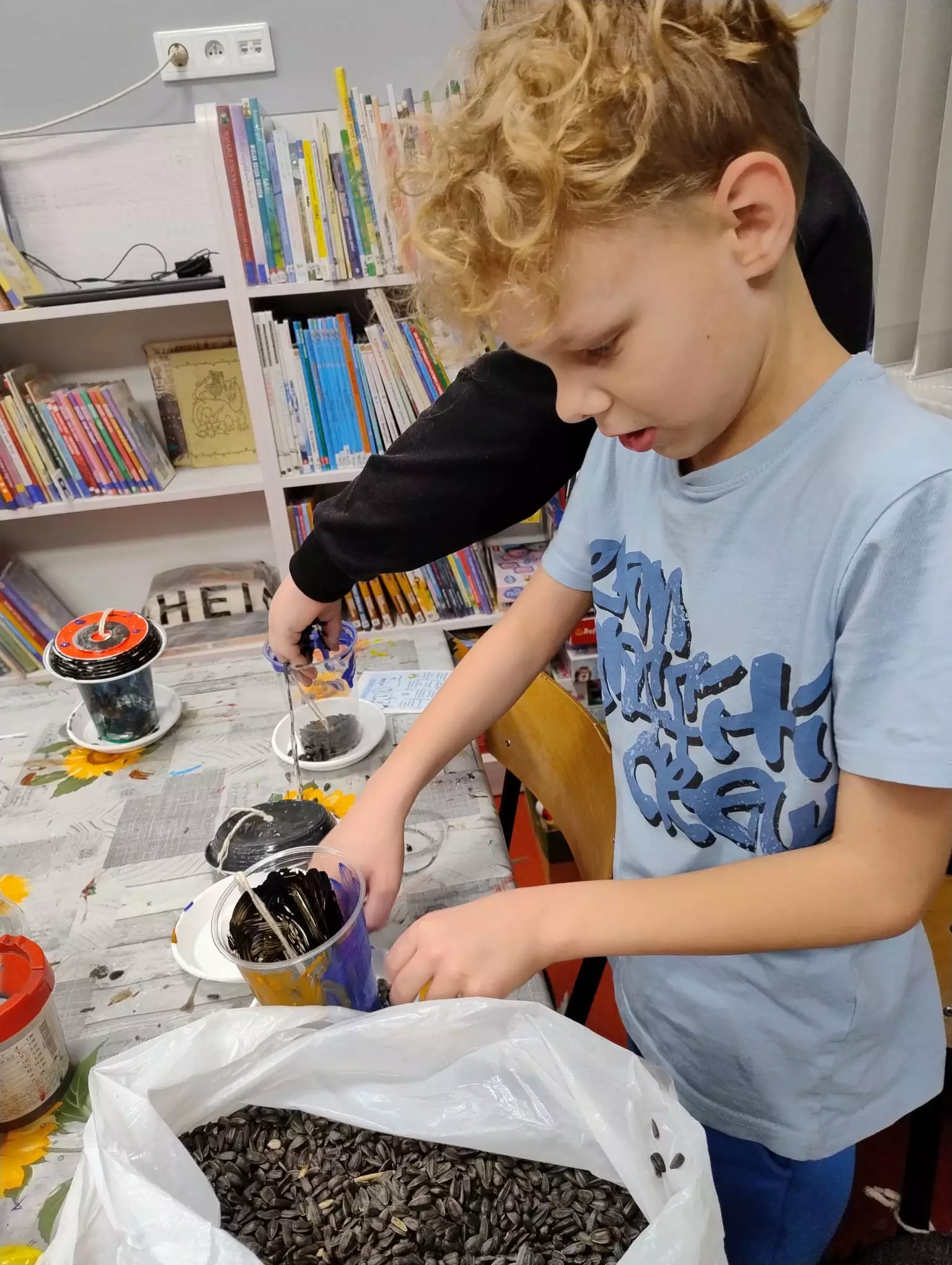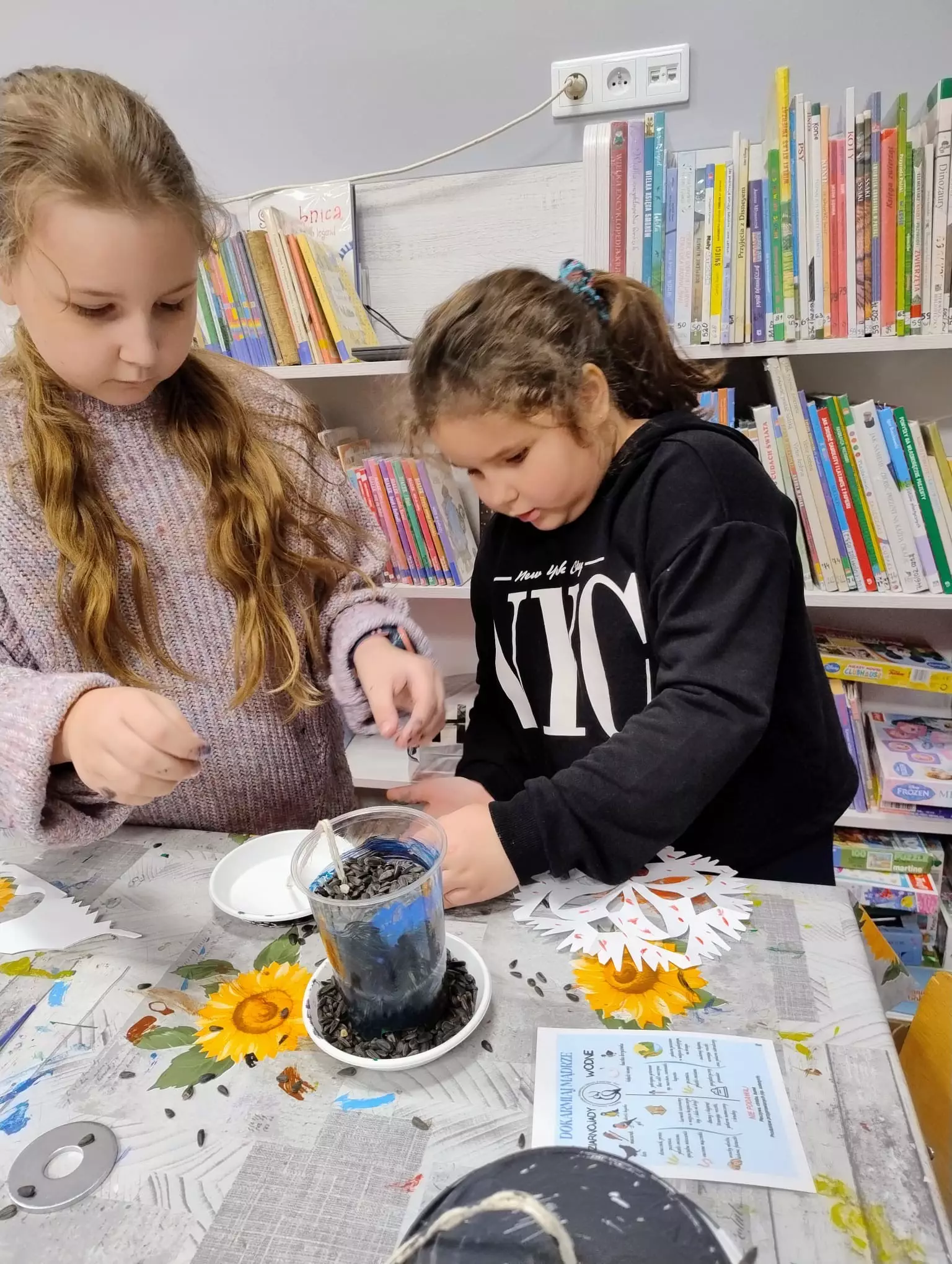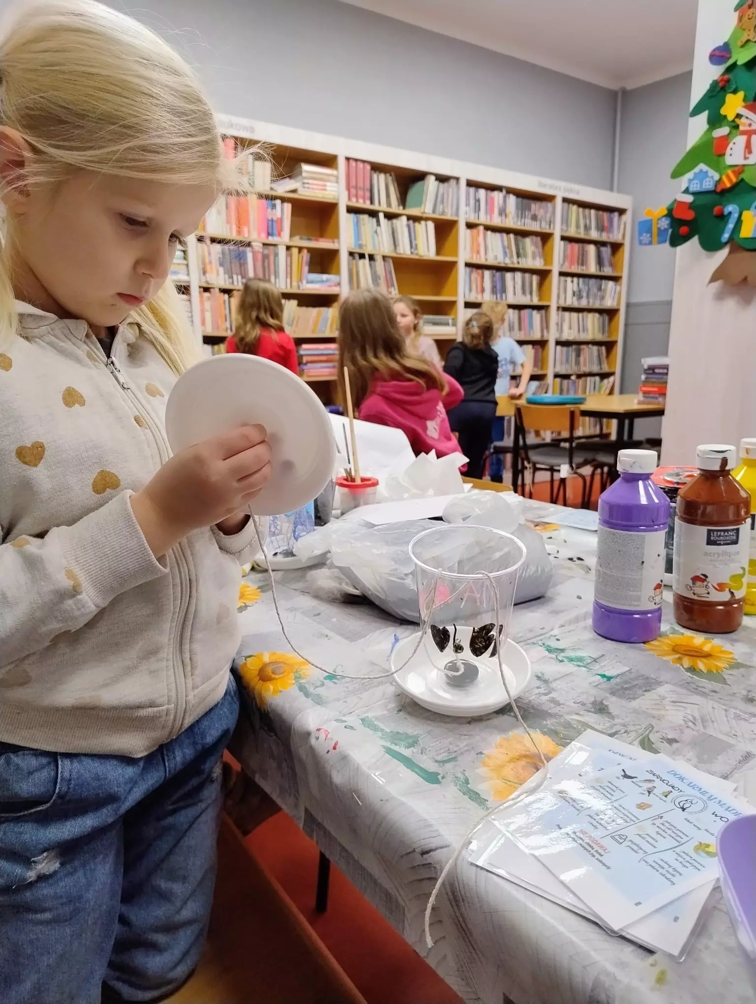 W bibliotece w Łagiewnikach Małych zapanował zimowy klimat. Dzieci wspólnie stworzyły Panią Zimę oraz bałwanki w zamieci śnieżnej. Powstały również obrazy malowane pastą do zębów. Po przeczytaniu książki "Za dużo zimowych zabaw" Katy Hudson rozmawialiśmy o tym jak zwierzęta radzą sobie podczas zimy i jak możemy pomóc im ją przetrwać. Dzieci chcąc pomóc ptakom w tym zimowym czasie zrobiły dla nich karmniki, dzięki którym przy okazji będą mogły obserwować swoich małych skrzydlatych przyjaciół.